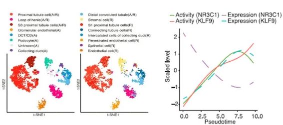 圖6 細胞群預測(左) 圖7 轉錄調控機制(右)