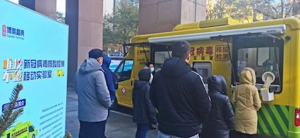 新冠病毒核酸檢測移動實驗室由清華大學、生物芯片北京國家工程研究中心和北京博奧晶典生物技術有限公司共同研發推出的全國首款輕型客車搭載的全集成新冠檢測移動實驗室,產品性能達到世界領先水平,“召之即來,來之能戰”的檢測效果,將為后疫情時代提供有力的技術支撐和防控保障。