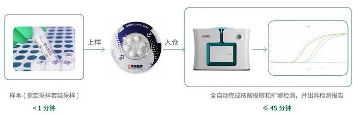 ? ? ? 全集成芯片實驗室采用全新一代的芯片實驗室技術(Lab-on-a-chip),集核酸提取、純化、擴增、檢測及結果分析功能于一體,真正意義上實現了“樣本進-結果出”的檢測。使用時,只需將待檢樣本加入芯片放入儀器,一鍵操作,配套智能軟件控制儀器會自動執行全流程并直接報告檢測結果。