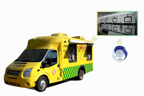 在新冠肺炎疫情期間,博奧研發團隊經過奮力攻關,研發出全集成芯片實驗室系統、車載新冠病毒核酸檢測移動實驗室等多項抗疫科研成果,筑起維護公共衛生安全的銅墻鐵壁。其中,全自動、全封閉式的全集成芯片實驗室系統可在45分鐘內以150拷貝/毫升靈敏度完成“樣本入-結果出”,35分鐘報陽(于2021年2月9日獲國家藥監局應急審批批準和歐盟CE-IVD認證);車載新冠病毒核酸檢測移動實驗室配有咽拭子自動采樣機械手和全集成芯片實驗室系統,作為抗疫“輕騎兵”,快速、準確、靈活的即時檢測,為社區、山區、鄉村等基層群眾就地核酸檢測全覆蓋成為可能,用科技助力打通疫情防控最后一公里。