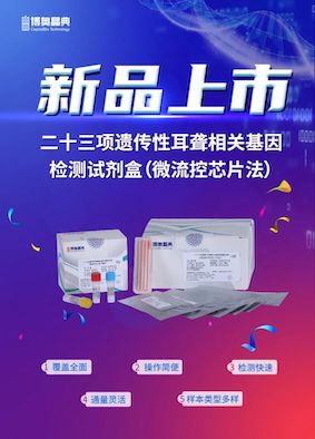 2021年9月18日,博奧晶典二十三項(xiàng)遺傳性耳聾相關(guān)基因檢測試劑盒(微流控芯片法)通過國家藥品監(jiān)督管理局批準(zhǔn)【注冊證編號:國械注準(zhǔn)20213400743】。依托全新微流控SNP芯片檢測系統(tǒng)(“I” Microfludic Array PlatformIMAP平臺)的二十三項(xiàng)遺傳性耳聾相關(guān)基因檢測試劑盒(微流控芯片法),采用微流控芯片技術(shù)結(jié)合競爭性等位基因特異性擴(kuò)增技術(shù),可以對常見的4個(gè)耳聾基因相關(guān)的23種突變形式進(jìn)行檢測。該試劑盒的獲批,為博奧晶典遺傳性耳聾基因檢測三級防控體系再添“芯”利器,助力臨床更快、更準(zhǔn)、更多地發(fā)現(xiàn)遺傳性耳聾基因攜帶者、環(huán)境因素致聾易感者及藥物性聾易感基因變異攜帶者,從而實(shí)現(xiàn)遺傳性耳聾的早發(fā)現(xiàn)、早診斷、早干預(yù)及早預(yù)警,全面開啟耳聾防控嶄新時(shí)代!