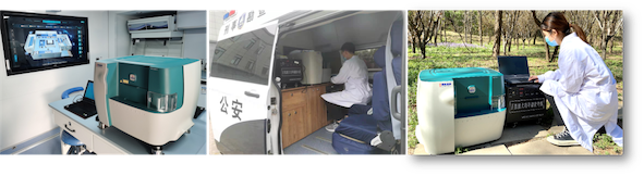 該系統適用于DNA、血卡和口腔拭子全自動檢測,實現全自動化操作,避免人為操作污染,降低了技術難度和使用門檻,對操作人員和實驗場所要求度低,可在實驗室、派出所、海關、機場、高鐵站等多場景應用,也可放置在現勘車深入法醫現場。系統將DNA檢驗全過程集成于一體,具有快速、自動化、便攜化、低成本等特點,技術人員稍加培訓即可使用,促使法醫DNA技術從專業實驗室走向基層和現場。