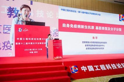 空軍軍醫大學西京醫院臨床免疫科主任醫師、全軍風濕免疫專科研究所所長朱平教授作了題為《自身免疫病新生抗原,基因表型及分子分型》的報告。目前,強直性脊柱炎(ankylosing spondylitis,AS)等慢性自身免疫性疾病新生抗原形成的機制尚不清楚。朱平教授團隊通過開放式質譜檢測系統篩選鑒定到與AS相關的蛋白翻譯后修飾——半胱氨酸羧基乙基化修飾,證實ITA2B@C96car是相關分型自身免疫性疾病患者的重要發病機制,為修飾新生抗原相關自身免疫病的病因學研究提供了實驗證據和重要研究思路。此外,朱平教授團隊系統分析患者HLA分型、代謝狀態、新生抗原及特異性自身抗體水平,破解了自身免疫病“環境-代謝物-新修飾-新抗元”致病分子新機制,對建立AS等免疫病自身抗原特異性篩查和針對性治療策略具有重大意義探索。