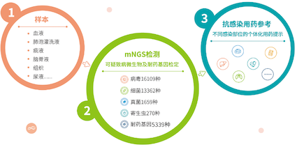 MAPMI®(Metagenomic Analysis Pipeline for Microbial Identification)技術(shù)是博奧晶典基于自主的BES4000高通量測(cè)序平臺(tái)研發(fā)的超廣譜病原體篩查技術(shù),覆蓋3.2萬(wàn)種的病原微生物及5339種耐藥基因,可直接對(duì)樣本中的核酸進(jìn)行檢測(cè),快速、精準(zhǔn)的獲得樣本中微生物序列信息,可對(duì)病原體的變異情況進(jìn)行進(jìn)一步追蹤監(jiān)控,在新發(fā)、突發(fā)重大疫情的監(jiān)控及快速反應(yīng)體系構(gòu)建上具有重大現(xiàn)實(shí)意義。同時(shí),基于檢測(cè)結(jié)果及患者臨床特征,對(duì)可疑致病微生物按照不同感染部位提供個(gè)體化用藥提示,實(shí)現(xiàn)感染性疾病的診斷、用藥全流程診療。