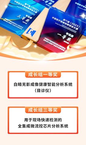 11月23日,“科創中國|第六屆(2023)中國醫療器械創新創業大賽人體精密測量專場賽暨2023人體精密測量創新創業大賽決賽”在海門舉行。經過激烈的角逐,本屆大賽最終決出成長組和初創組各一等獎2名、二等獎3名及三等獎5名,其中“白睛無影成像健康智能分析系統(目診儀)”和“用于現場快速檢測的全集成微流控芯片分析系統”突破重圍,憑借其創新成果和先進技術,獲得現場評審專家的一致認可,分別以優異的成績榮獲成長組一等獎和三等獎。