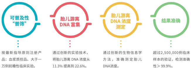 在廣東省婦幼保健院、南京市婦幼保健院、浙江大學醫(yī)學院附屬婦產(chǎn)科醫(yī)院、鄭州大學第三附屬醫(yī)院完成了10,818例前瞻性臨床樣本的驗證研究,與染色體核型分析結果和出生隨訪結果對比,其靈敏度為100%,特異性為99.91%,總符合率為99.91%。試劑盒已于2020年8月獲得醫(yī)療器械注冊證(醫(yī)療器械注冊證號:國械注準20203400708)。 截至目前,已完成超過400萬例臨床樣本的篩查,避免了多個家庭的異?;純撼錾?,為出生缺陷防控做出了突出貢獻。