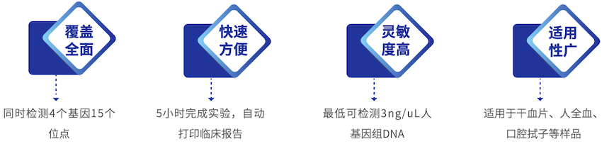 ? ? ? 十五項遺傳性耳聾相關基因檢測試劑盒(微陣列芯片法)采用多重等位基因特異性PCR與通用芯片相結合(ASPUA) 技術,同時檢測人全血基因組DNA中GJB2、SLC26A4、12S rRNA、GJB3基因共15個位點。