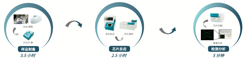 采用基因芯片檢測技術(shù),快速對兩種主要的一線抗結(jié)核藥物利福平和異煙肼的耐藥情況進(jìn)行評估,進(jìn)而實(shí)現(xiàn)對耐多藥結(jié) 核病的快速診斷。該試劑盒是國內(nèi)第一個獲得CFDA 認(rèn)證的耐多藥結(jié)核病快速診斷產(chǎn)品。